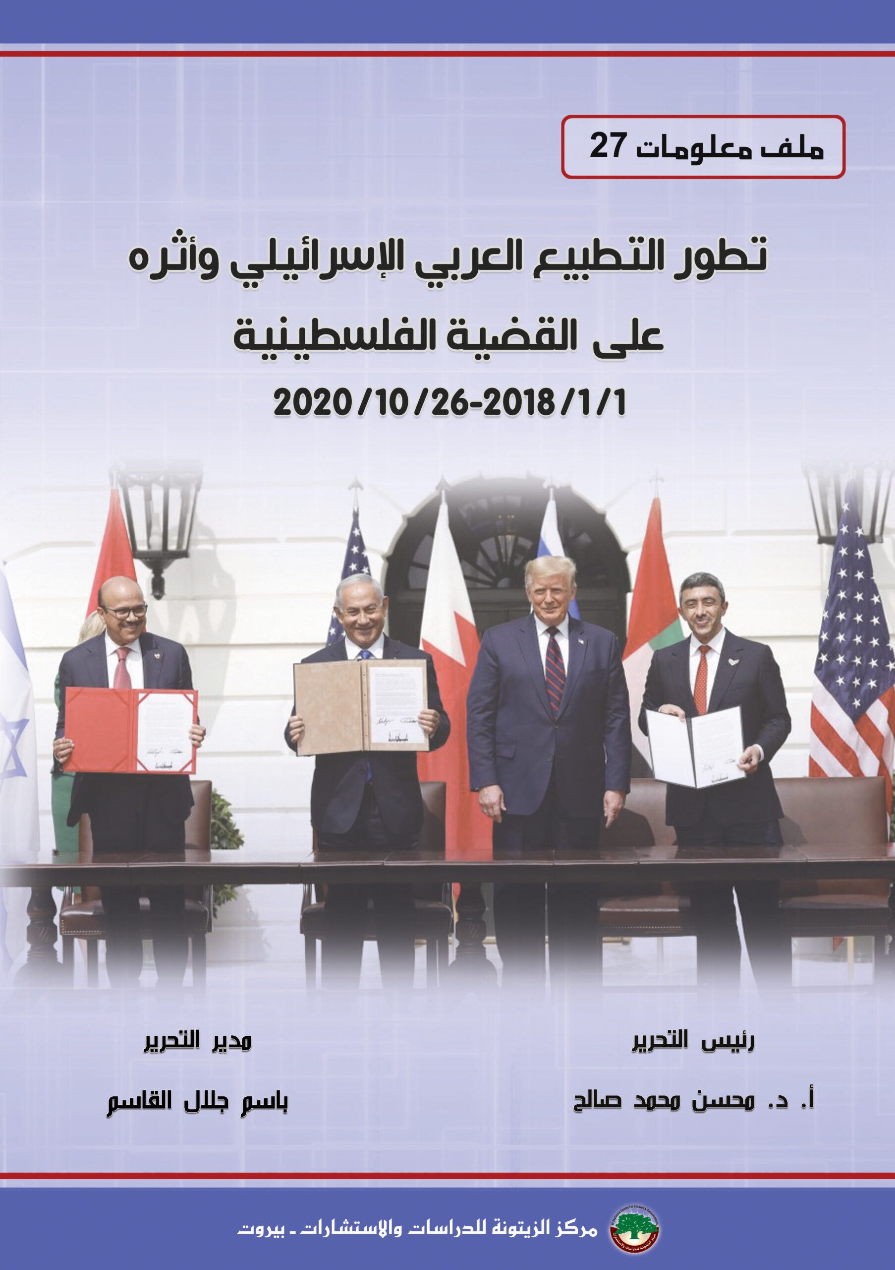 شبكة المدار الإعلامية الأوروبية …_أصدر مركز الزيتونة للدراسات والاستشارات في بيروت ملفَ معلومات بعنوان “تطور التطبيع العربي الإسرائيلي وأثره على القضية الفلسطينية”. إذ شهدت الأشهر والأسابيع الأخيرة عقد اتفاقيات تطبيع بين بعض الدول العربية وبين الكيان الإسرائيلي. جاءت هذه الاتفاقيات تتويجاً لمسار تطور تدريجياً منذ سنوات. بدأت إرهاصات هذا المسار من خلال لقاءات أخذ أكثرها طابعاً سرياً، تمحورت حول التعاون الأمني والاقتصادي والعسكري.