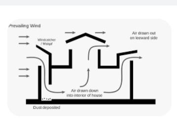وان هذا النوع من البناءالمعماري الذي يساعد في صيد نسمات الريح الشمالي او الشمال الغربي والذي يدعى( الصبا) والذي نسمية في العراق (العذيبي)ودائما يكون هواءه باردا…