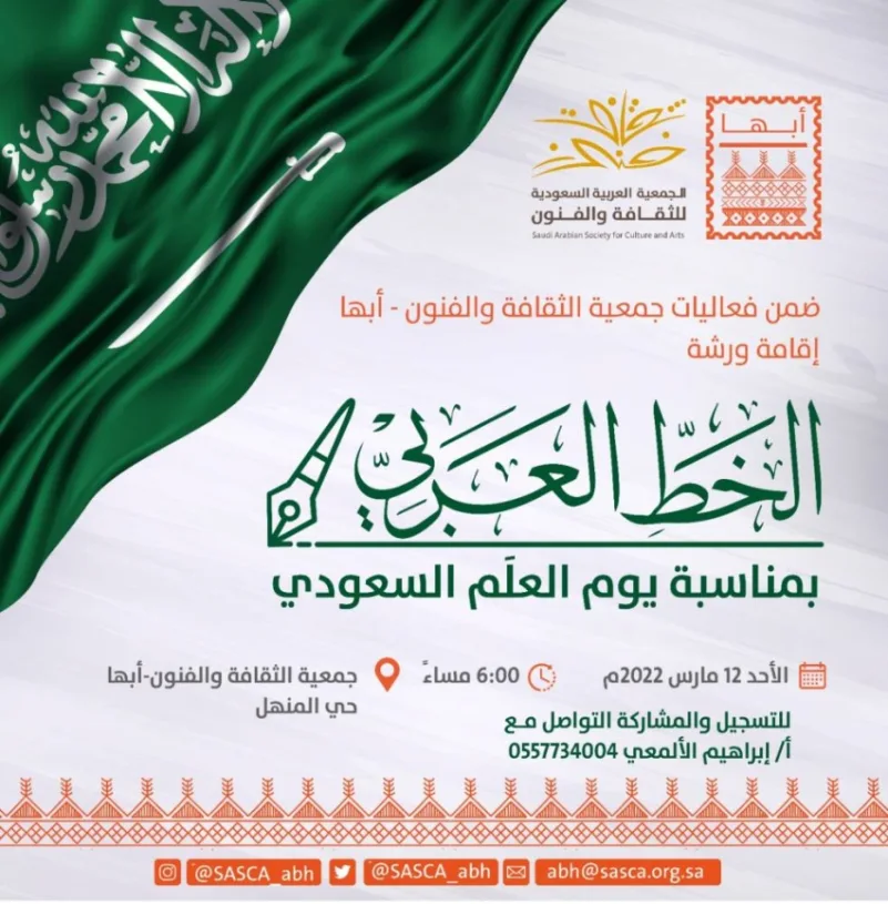 شبكة المدارالإعلامية الأوروبية…_تحتفي جمعية الثقافة والفنون بأبها مساء اليوم الأحد بيوم العلم بمعرض فوتوغرافي بعنوان ” البيرق” مع ورشة للخط العربي