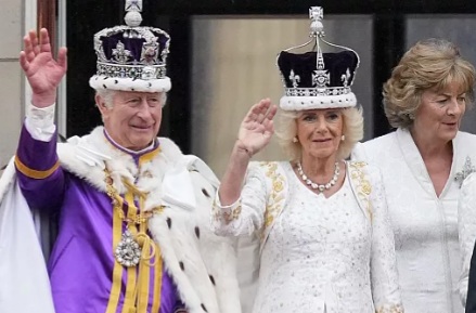وبعد انتهاء المراسم في كنيسة وستمنستر في لندن، توجه الملك وزوجته الملكة كاميلا إلى قصر بكنغهام، حيث قدّم مئات العناصر من الجيش البريطاني التحية لهما.