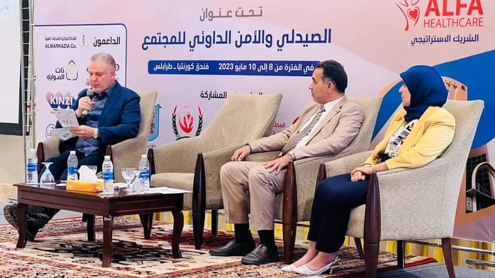 شبكة المدار الإعلامية الأوروبية …_اختتمت الاربعاء الموافق 10 مايو 2023م بفندق كورنثيا بمدينة طرابلس فعاليات وأعمال المؤتمر العلمي للنقابة العامة للصيادلة والذي نظمته واشرفت عليه النقابة العامة للصيادلة- ليبيا بالتعاون مع عدد من كليات الصيدلة والطب والشركات الدوائية تحت شعار «الصيدلي والأمن الدوائي للمجتمع» والذي شارك فيه نائب رئيس مجلس الوزراء وزير الصحة المكلف السيد رمضان أبوجناح،