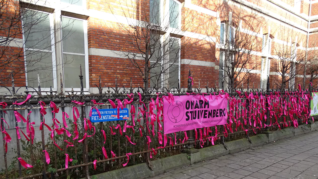 السكان المحليون في مستشفى ستويفنبرغ في أنتويرب مئات الأشرطة الوردية على الأسوار حول الموقع الشاغر. من خلال القيام بذلك ، يريدون لفت الانتباه إلى الشكوك المحيطة بإعادة التطوير النهائية للمستشفى القديم. هذا الإجراء هو جزء من حملة أوسع من قبل مجموعة السكان “احتضان Stuivenberg”.