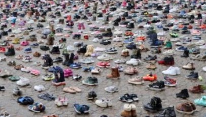 ملأت الآلاف من أحذية الأطفال ساحة بمدينة أوتريخت في هولندا، الأحد 19 مارس/آذار، تذكيراً بالعدد الهائل من الأطفال الأبرياء الذين قتلوا في غزة.
