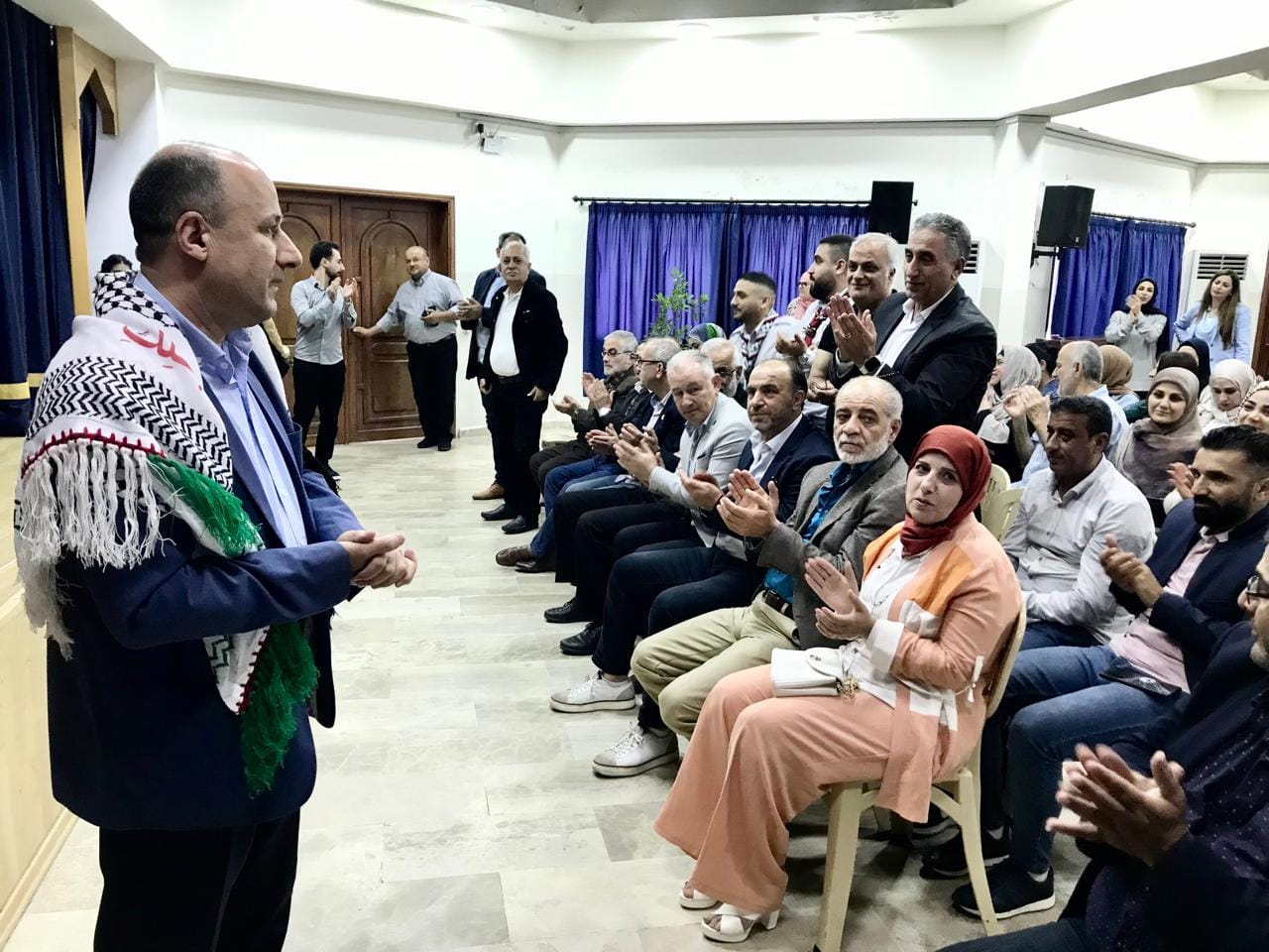 هذا ومثل وفد ”المؤسسة الفلسطينية للشباب والرياضة في لبنان“ السيد خليل العلي والسيد طارق طه، كما قدم الكوفية الفلسطينية لمدير ”ثانوية السفير“ الدكتور سلطان ناصر الدين.