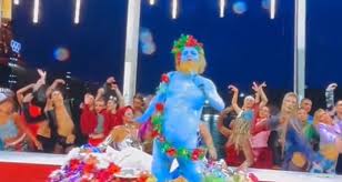 وبحسب ما ذكرته صحيفة الديلي ميل ”Daily Mail“ أثارت شخصية “الرجل الأزرق العاري” في مشهد يشبه العشاء الأخير استياء الكثيرين، خاصةً المسيحيين.