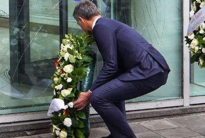 بعد ذلك، وضع رئيسا الوزراء أكاليل الزهور تكريما للفقيد، برفقة قميص كرة القدم السويدي، عند سفح المبنى الزجاجي. يمكن قراءة عبارة “إلى الأبد في أفكارنا” على إكليل الزهور.