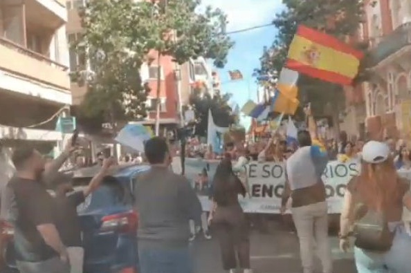 خرج المتظاهرون إلى شوارع مدينتي لاس بالماس دي جران كناريا وسانتا كروز دي تينيريفي، حاملين لافتات تحذر من زيادة أعداد المهاجرين الوافدين.