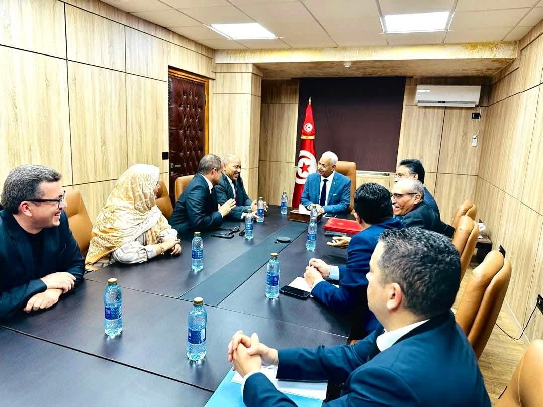 شبكة المدار الإعلامية الأوروبية …_استقبل صباح الأربعاء 07/مايو 2025 م وزير التجارة وتنمية الصادرات بالحكومة التونسية السيد سمير عبيد. ((السيد محمد الهنقاري)) مدير عام مركز تنمية الصادرات والسيد مراد بن حسين الرئيس المدير العام لمركز النهوض بالصادرات التونسي