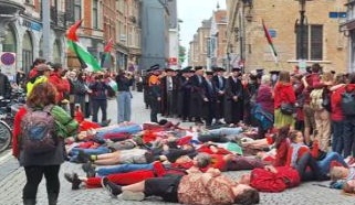 جامعة لوفين الكاثوليكية هي أول جامعة فلمنكية تفتتح العام الدراسي الجديد يوم الأربعاء. جرت العادة أن يُقام هذا الاحتفال بمسيرة “توغاتي”، وهي مسيرة لجميع الأساتذة من قاعات الجامعة إلى كنيسة القديس بطرس. وقد اعترض هذه المسيرة صباح اليوم ناشطون مؤيدون للفلسطينيين. وتجمع حوالي 170 ناشطًا على جانبي شارع نامسيسترات، نقطة الانطلاق التقليدية للمسيرة. وبينما غادرت مجموعة الأساتذة قاعة الجامعة، انبطح عشرات الناشطين أرضًا لمنع المسير.