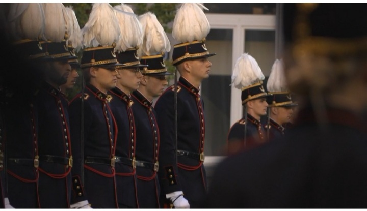 وفي الحفل، كان والده فيليب، ملك بلجيكا، هو من قام بفحص القوات.