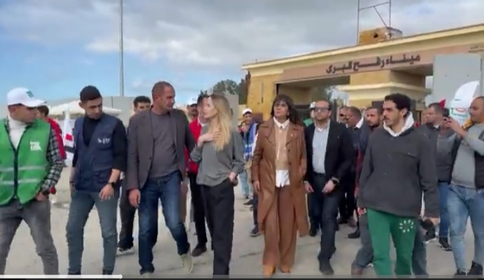 شبكة المدار الإعلامية الأوروبية…_زارت نجمة هوليوود البارزة أنجيلينا جولي الجانب المصري من معبر رفح الحدودي مع قطاع غزة، حيث تحدّثت إلى أعضاء في الهلال الأحمر وسائقي شاحنات ينقلون المساعدات الإنسانية.
