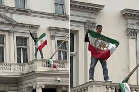 أفادت الشرطة البريطانية بأن متظاهرًا تسلّق سطح سفارة إيران في لندن وأنزل العلم الرسمي للجمهورية الإسلامية، في حادثة تتزامن مع استمرار الاحتجاجات الشعبية في إيران. وقد تم اعتقال المتظاهر وعدد من الأشخاص الآخرين.