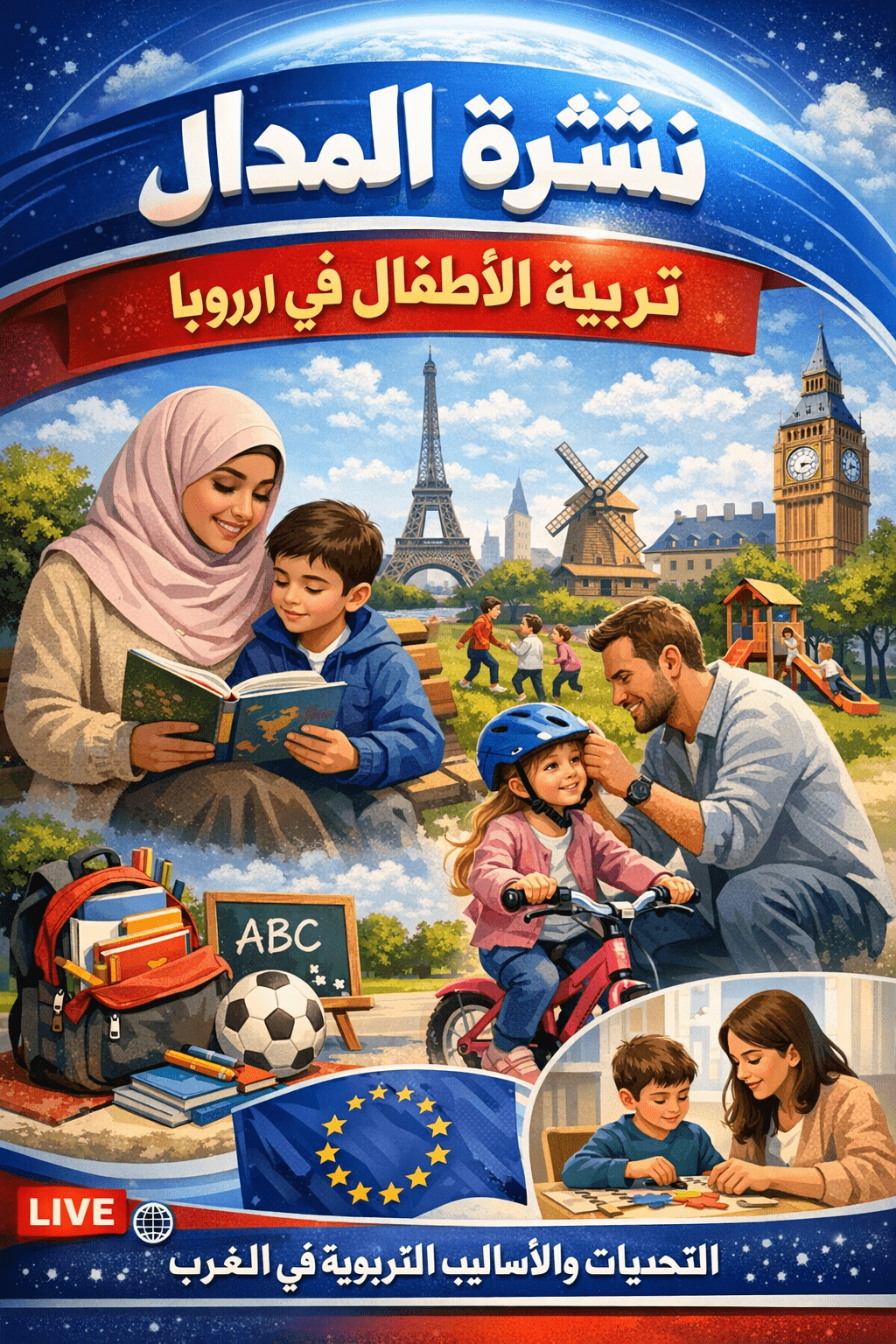 📢 شبكة #المدار #الإعلامية #الأوروبية: تظهر التقارير من عواصم أوروبا أن قضايا الطفولة المبكرة تحتل أولوية متزايدة. الاستراتيجيات الوطنية والأوروبية تركز على ضمان الصحة الشاملة (منظمة الصحة العالمية)، تمويل الكوادر التربوية (الدنمارك)، الدعم المالي للأسرة (فرنسا)، إشراك الآباء (إيطاليا)، ومعالجة فجوات الاستعداد للمدرسة (بريطانيا) والالتحاق المبكر (المفوضية الأوروبية). التحديات المشتركة تشمل تأثير التكنولوجيا، الفقر، وصعوبات الوصول للخدمات، والحلول تتجه نحو استثمارات حكومية أوسع وسياسات أكثر شمولاً لضمان “بداية صحية” لكل طفل.
